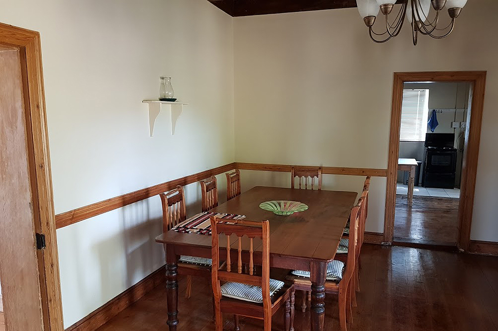 The kitchen is fully equipped for self catering. The large dining area has a dinner table and seating for 8 guests. The living room has a comfortable seating area and piano. Wood for the braai (BBQ) area is supplied.